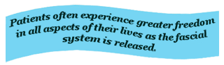 Myofascial Release is a gentle, hands-on approach used to free up fascial restrictions throughout the body. This is accomplished by applying sustained pressure into the fascial barrier or restriction, waiting a minimum of 90 to 120 seconds for a release to occur, following that release into the next barrier, and waiting again. After a series of releases, a noticeable softening can be felt as the tissue elongates. As fascial layers are released the client gains greater flexibility. This takes pressure off of sensitive structures and allows normal function.